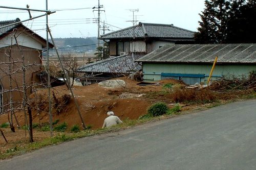 所有者に声をかけて近影。石室材らしき石がいくつか見える。
