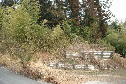 1号墳。地元の方によるとこの藪の中にあるらしい。2号墳は山林中のため探索を断念。