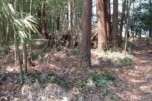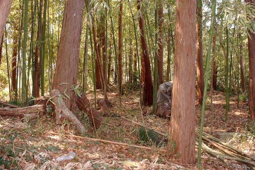 52号墳。10,11号と14号の間の林の中。川原石が見える。これだと思うが墳丘が判然としない。