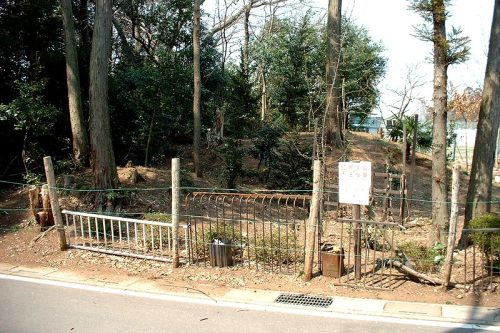 切通し上の墓地にある14号墳。(手前が墓地)これと10,11号墳のあいだに52,53号墳がある。