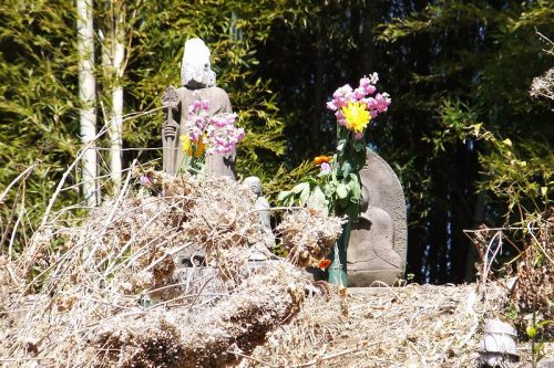 墳頂に石仏。残念ながら塚の可能性ありとのこと。