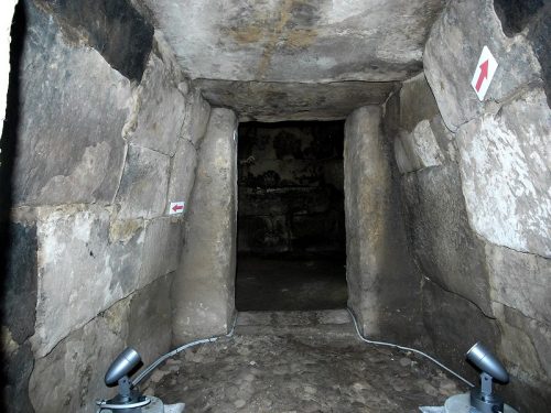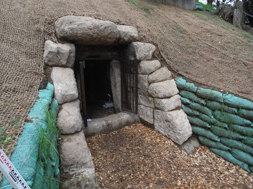 前室を奥から。今後石室は施錠され内部を見学するには許可が必要。照明が設置されたので柵越しに内部を観察することはできる。