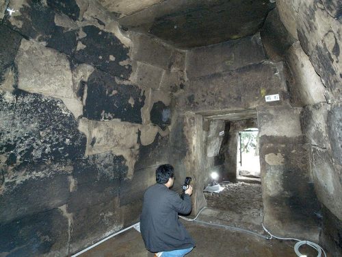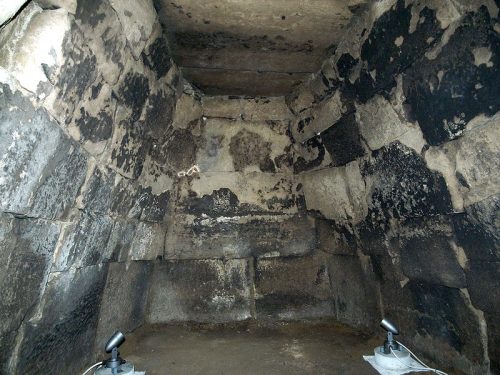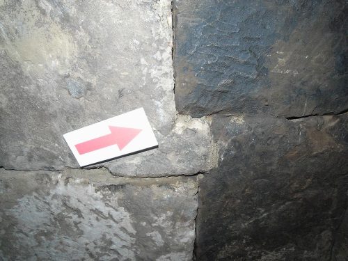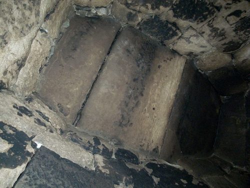 キリ石切組積み。内面は平滑に仕上げられているがノミの跡が明瞭に残る。