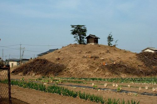 南西から。古墳群の主墳と考えられる。前方部が非常に低く帆立貝形墳に近い。6世紀初頭の築造と推定される。市指定史跡。