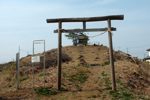 後円部墳頂は熊野神社社殿。2003年に訪れたときは樹木(杉?)が伐採されたばかりだった。