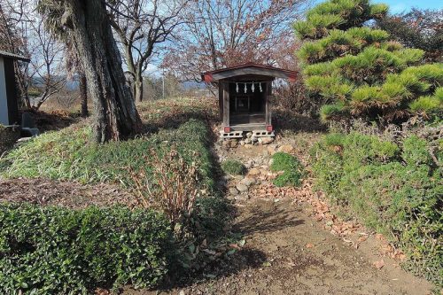 2号墳。1号墳の北100mくらいの民家の庭先。社がある。