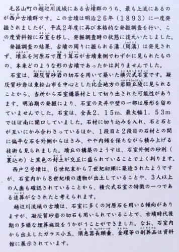 西戸古墳群は、越辺川の左岸、西戸町民グラウンド北側の河岸段丘上に分布しています。15基の古墳が確認され6世紀末から7世紀の築造と推定されています。【アクセス】東武線川角駅から徒歩・自転車2.5km、資料館駐車場、見学自由 ★地図★
