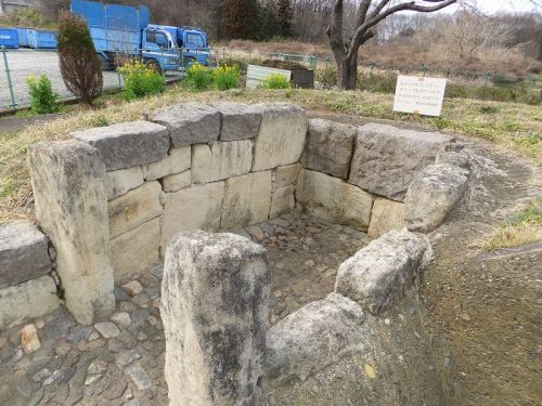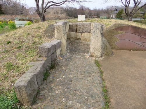 毛呂山町歴史民俗資料館の庭に移築復元された2号墳。もともとは1号墳の東数十mのところにあった。