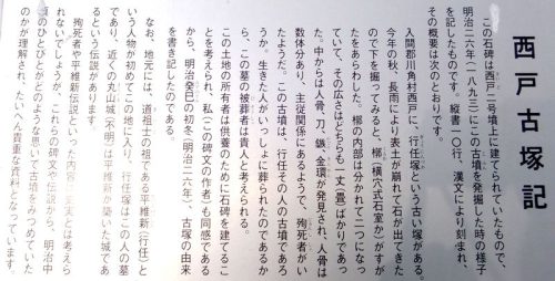 明治26年に発掘され、そのときの様子を記した貴重な石碑。