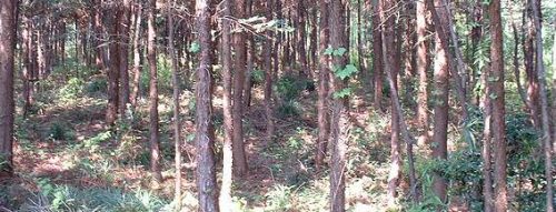 8~12号墳は1号墳から南南西100mくらいの民家裏の林の中。群中最も観察が困難。これは推定8号墳。このすぐ西に9,10号墳があるはずだが確認できず。