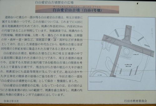 白山愛宕山古墳(白山4号墳) 円墳 周溝内径約26m、外径約39m 長野 台地・田 埴輪、土師器、須恵器 現地案内板