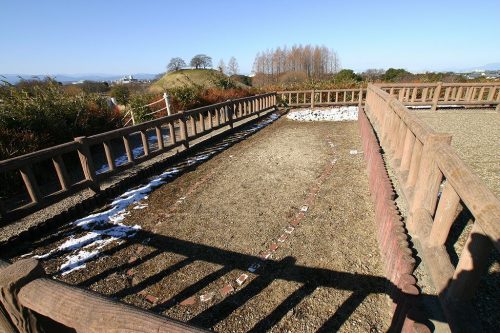 南西から。前方部は昭和12年土取りのため消失したが近年復元された。