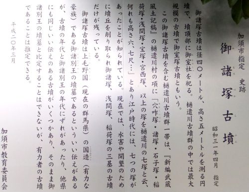 樋遣川古墳群は、北中学校の南東500mほどの低地に分布しています。かつて7基の古墳が知られていましたが現存するのは3基のみです。【アクセス】★地図★