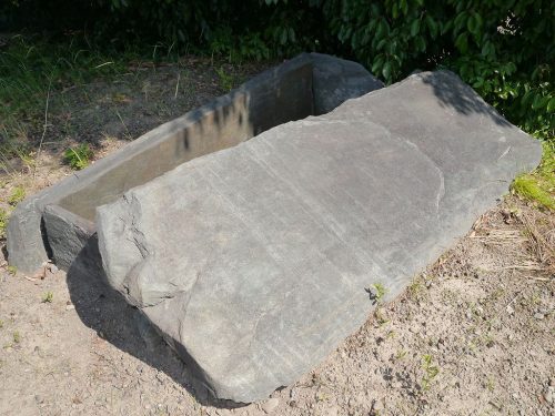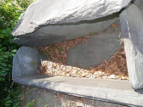 緑泥片岩でつくられた箱式石棺。埼玉県で残っているのは極めて珍しく町指定考古資料に選定されている。