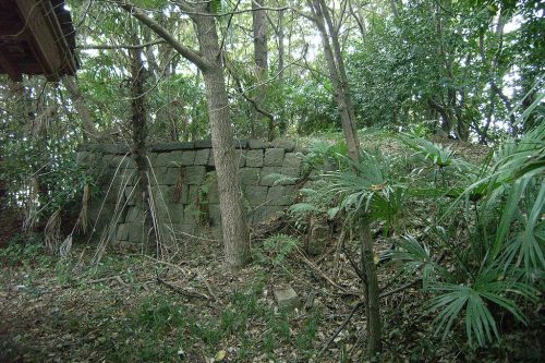 かつて学校があったとはとても思えない状況であるが、墳丘上にこんな石垣があった。