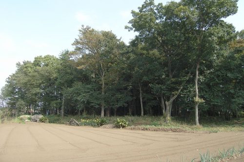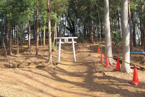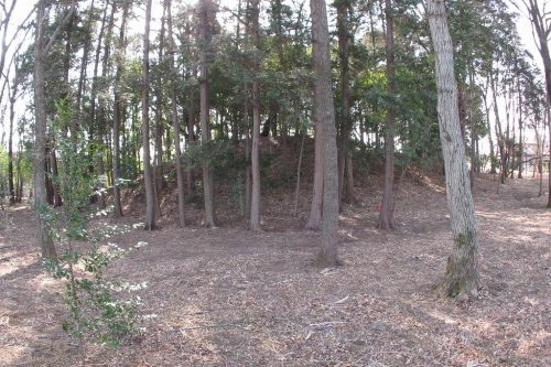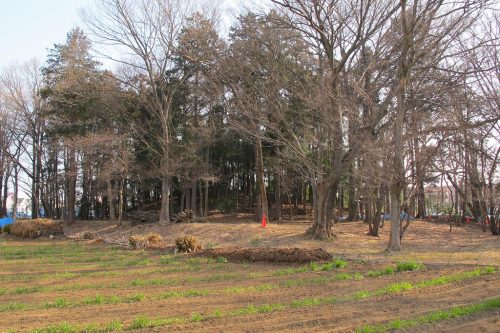 2006年。南西から。低い方形部が見てとれる。円形部はこの奥の林の中。大型でしかも上円下方墳という珍しい墳形とみられているが、同じ墳形の熊谷市宮塚古墳が国指定なのとくらべ、扱いが非常に地味である。(この3枚の写真は2006年のもの。2013年に発掘調査が行われ現地説明会が開催された。)