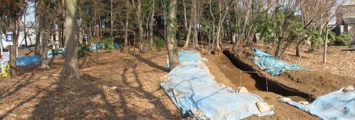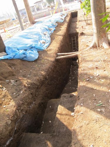 南西側のトレンチ。下方部のコーナーが確認できた。