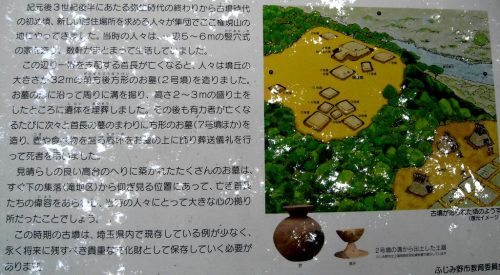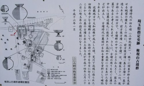 ふじみ野市権現山1号墳 80埼玉県, ふ_ふじみ野市 コメントを追加 10月 172025 権現山古墳群は、ふじみ野市役所東方の新河岸川南岸に分布しています。前方後方墳1基、方墳11基からなり3世紀後半の築造と推定されています。【アクセス】★地図★古墳名 墳形 規模 所在地 立地 出土品、備考 引用権現山1号墳 方墳 一辺14m 滝一丁目 台地 権現山古墳群とその周辺 南から。大半が道路で削られ墳丘の一部が残るのみ。発掘調査の結果、古墳時代初期の貴重な群集墳と判明し、史跡公園として整備公開されている。 (撮影 2013/10) 返信する 返信をやめる Your Comment 以下のHTML タグと属性が利用できます: <a href="" title=""> <abbr title=""> <acronym title=""> <b> <blockquote cite=""> <cite> <code> <del datetime=""> <em> <i> <q cite=""> <s> <strike> <strong> Name (required) E-mail (required) URI 次回のコメントで使用するためブラウザーに自分の名前、メールアドレス、サイトを保存する。