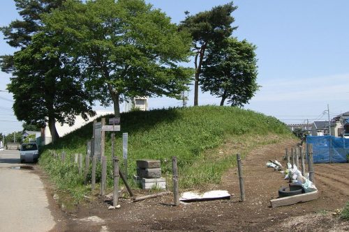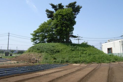 南から。台地の縁に築かれた大型の円墳。生出塚埴輪窯跡(鴻巣市)産とみられる埴輪が出土しており6世紀後半の築造と推定されている。(説明板では7世紀)