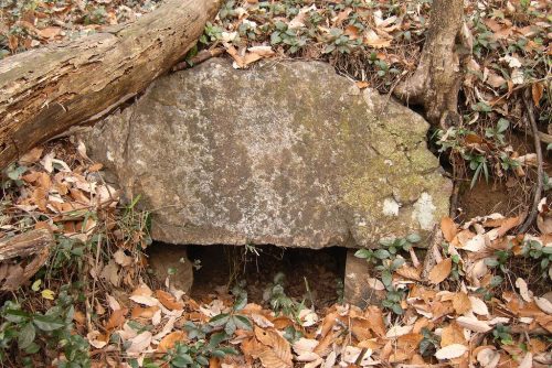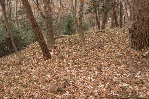 東から。尾根に近い南斜面にある。山前公園から尾根に至る山道の近くで下草も刈られ観察しやすい。