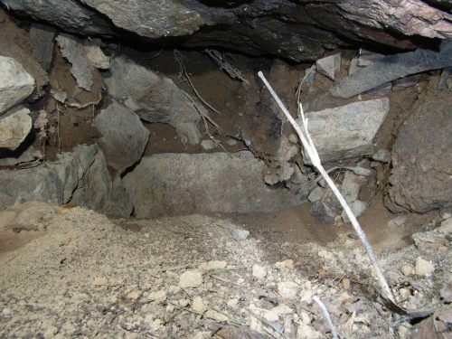玄室。チャートの割石積。崩壊が進み状態は非常悪い。