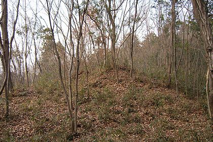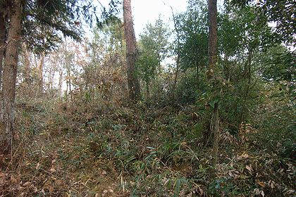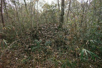 17号墳。尾根沿いの道(写真左端)を挟んで15号の東側。北へ進むとすぐに21~31号の分布する発掘調査区域へ至る。