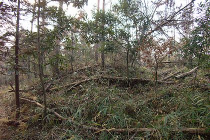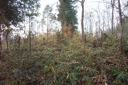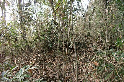 推定15号墳。山頂部ならここが15号のはずだが藪で墳丘が確認できず。