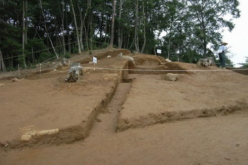 菅田古墳群は、北郷小学校北方の丘陵上に分布する群集墳です。昭和56年の調査で円墳50基が確認され、その後の調査で44号墳が前方後円墳であることが確認されています。一部が北関東自動車道用地にかかったため平成18年に発掘調査が行われました。(本ページもいつものことですが、発掘担当者の校閲を受けていません。)