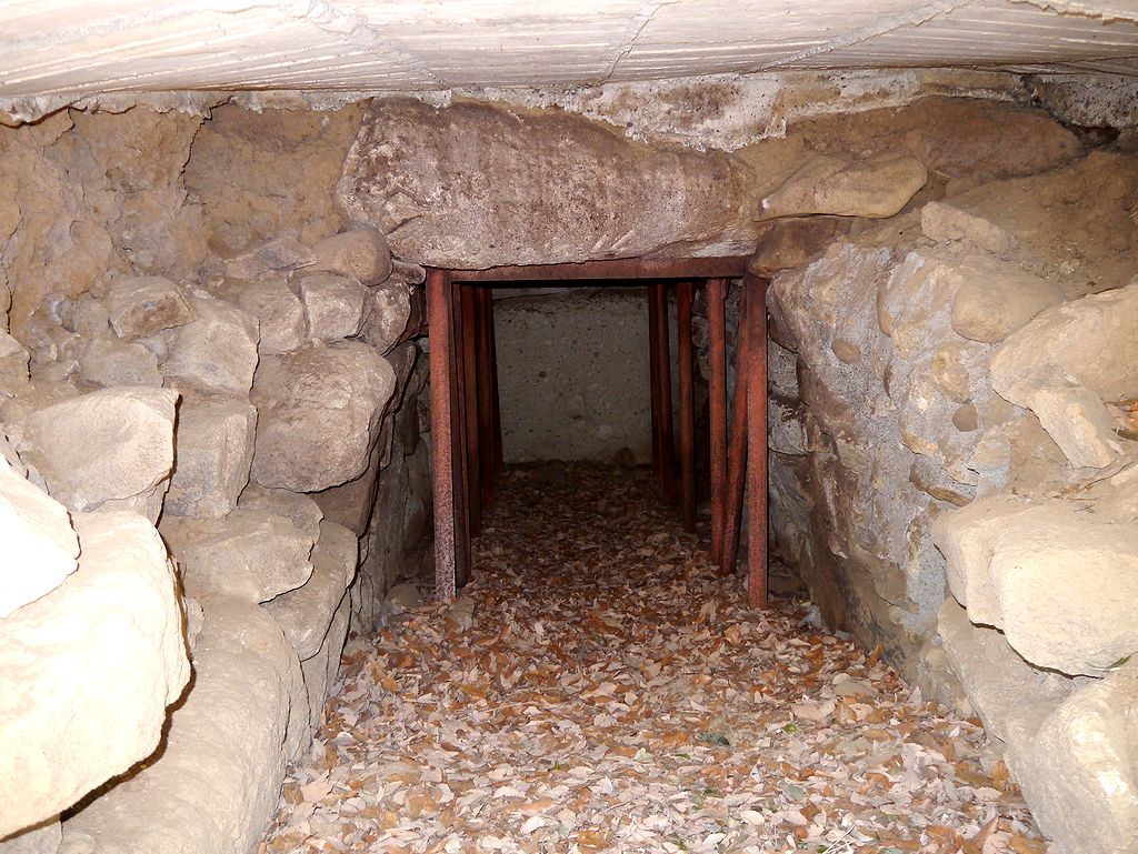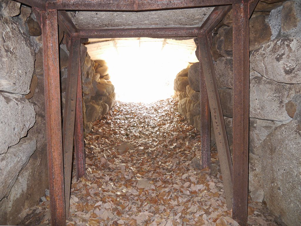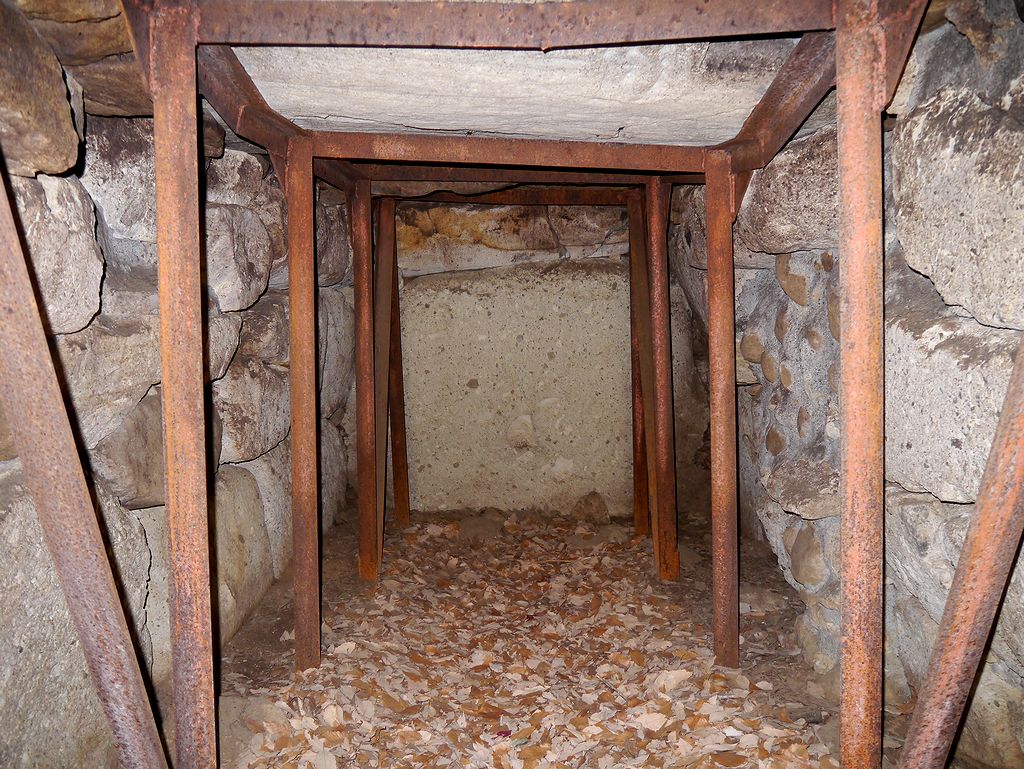 南向きに開口する石室。天井はコンクリートでガチガチに補強されている。