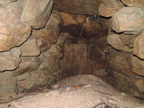 南向きに横穴式石室が開口。右手前の石は羨道天井石か?開口部は非常に狭くデジカメを差し込んでやっと撮影。