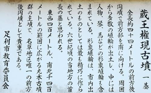 丸木8号墳(蔵王権現古墳) 前方後円墳 墳長44m 名草下町 丘陵 円筒埴輪・形象埴輪(人物・琴・馬) 足利市文化財総合調査年報