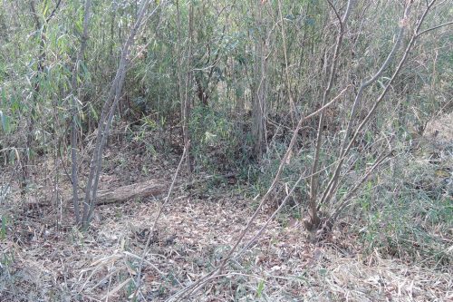 5号墳。4号の東で尾根に近い南斜面にある。石室は破壊。尾根上から見ているので低く見える。