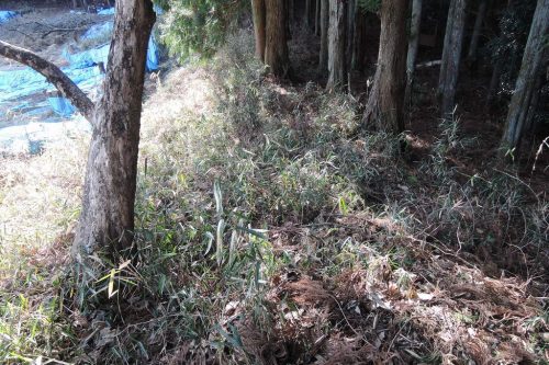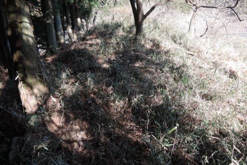 後円部から前方部。現状では非常に幅が狭い。
