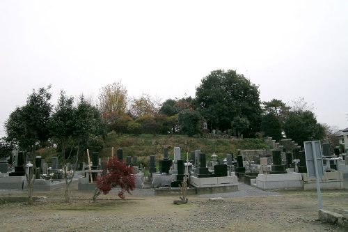 西から。非常に大きな墳丘が残るが寺院建設や墓地造成で破壊が著しい。調査年報では南に前方部を向ける前方後円墳と推定している。主体部は破壊されたものと思われるが、出土品から足利市では数少ない5世紀代の古墳と考えられている。