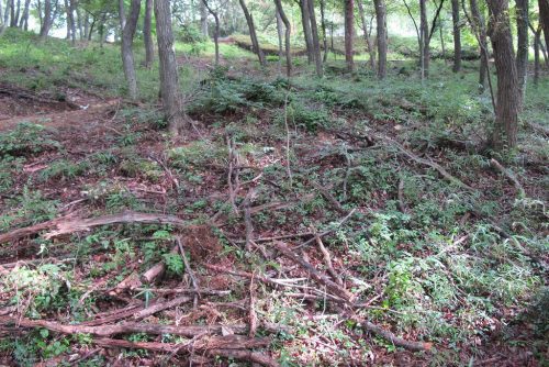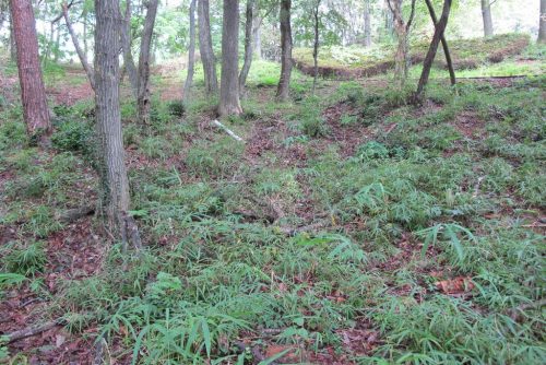 22号墳を南から。横穴式石室があった思われる部分が削られ窪んでいる。