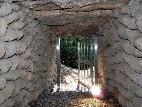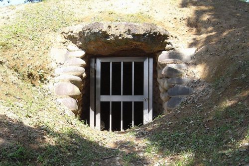 南向きの開口する無袖式の横穴式石室。普段は施錠されているが2009年再訪時開放されていた。