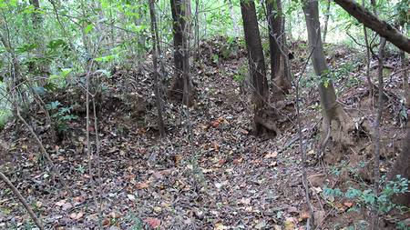 萬福寺墓地背後付近の1基。やはり南側が抉られている。
