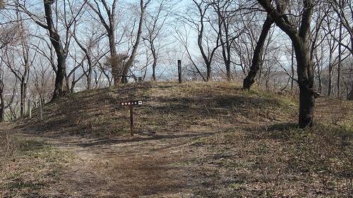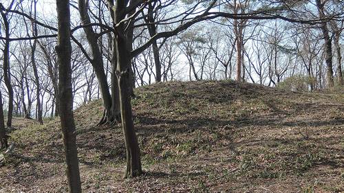 4号墳。北入口から登りつめたところにある。3号墳が隣接しており、角度によっては前方後円墳のように見える。