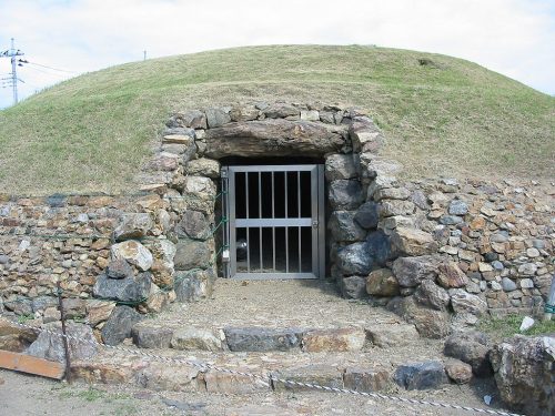 3段築成で、埴輪・葺き石が認められる。主体部は南向きに開口した横穴式石室。施錠されていた。鉄扉に照明のスイッチがある。