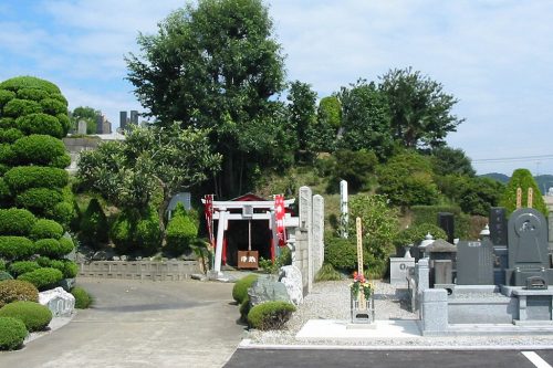 南から後円部。鳥居の奥に石室が開口している。