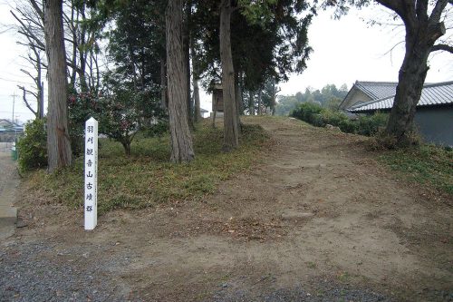 南から。手前が前方部。平成5年に測量調査と前方部裾付近のトレンチ調査が行われ、結果、南北を軸とする前方後円形を呈することが確認された。トレンチから遺物は確認されなかった。