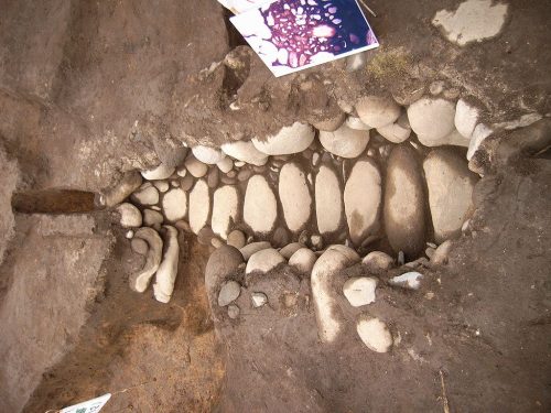 ほぼ東西を軸にした隅丸で河原石積みの小型竪穴式石槨。5世紀後半の築造と推定されている。