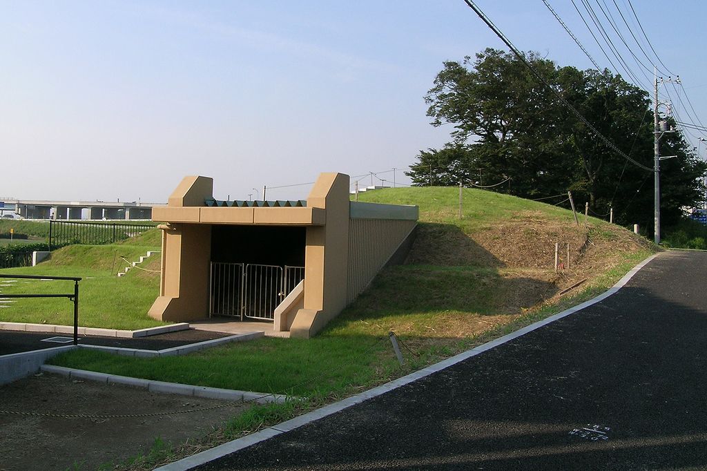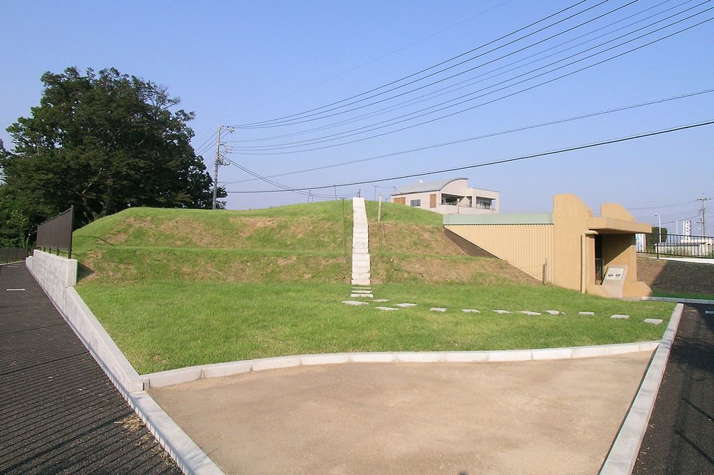 (現地案内板より) 伊勢崎市指定史跡 一ノ関古墳 平成10年12月28日指定 一ノ関古墳は前方後円墳で、粕川の侵食により前方部の大半を削り取られています。現存する墳丘は全長約28mですが、失われた前方部を合わせると、およそ50mの古墳に復元することができます。 墳丘は二段の葺石が築かれ、その間のテラスに円筒埴輪が立てられていました。また、下段の葺石から周堀までは約7mの基壇面が広がり、3段築成を意識して築造されており、周堀は幅約5m、深さ約0.8mで墳丘をめぐっています。 後円部には横穴式石室が造られていて、入口を南に向けています。墳丘からは家形埴輪や円筒埴輪が出土しています。また、前庭付近からは須恵器の高坏なども出土しています。 築造年代は石室の構造や出土遺物から、6世紀後半と考えられます。周片は本関町古墳群を形成していますが、そのほとんどが小規模な円墳であることから、この時期の地域の中心的な人物を埋葬した古墳と考えられます。 平成17年1月31日 伊勢崎市教育委員会 一ノ関古墳の石室 石室は両袖型の横穴式石室で、遺体を埋葬した玄室と通路の役割をもつ羨道からなっています。全長は約6m、奥壁部の幅は約1.5m、高さは約2mです。石材には輝石安山岩の割石を使い、奥壁には巨大な石を使用しています。石室は当時の地表面を掘り込んで造られており、外側には補強のための石組(控え積み)が行われ、天井石の周りは粘土で覆われていました。 羨道の入口は石でふさがれ、全面には墓道のような細長い前庭が設置されています。この前庭は幅が0.8mと狭く、羨道入口から下段葺石にむけてスロープ状に造られたもので、たいへん珍しいものです。 遺物は石室内にほとんどなく、前庭などから須恵器の高坏、堤瓶が出土しています。 (以下略) 平成17年1月31日 伊勢崎市教育委員会