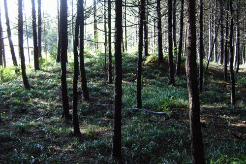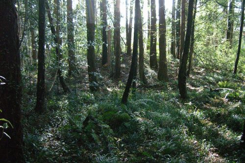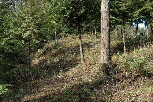 推定11号墳を南東から。尾根上の町営墓地南側にある。群中最大規模の円墳。(これではなく墓地東側の藪がもしかしたら11号かもしれない。)