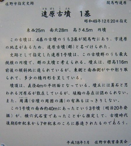 遠原1号墳 円墳 東西25m、南北28m、高さ4.5m 閑馬町 丘陵 葺石 田沼町史、現地案内板