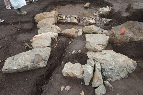 チャートを用いた横穴式石室羨道付近の下部のみ残存。