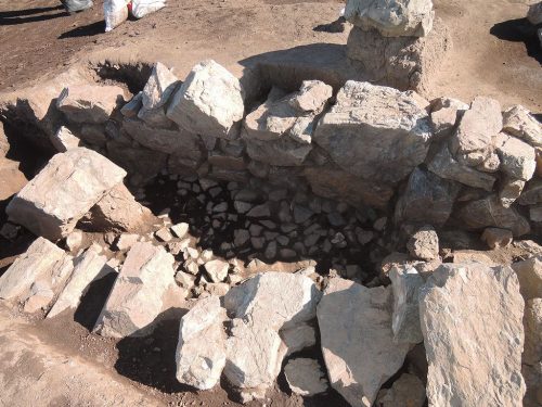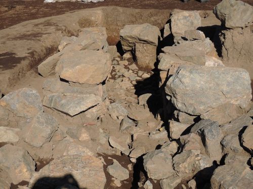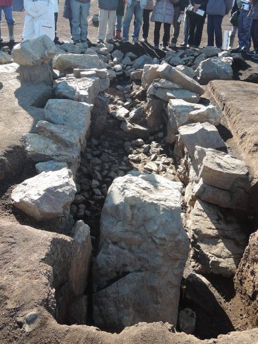 古墳時代後期の円墳。横穴式石室の下部が残存。手前は前庭部。栃木では前庭部のある古墳は少なく、群馬の影響をうけたものであろうとのこと。