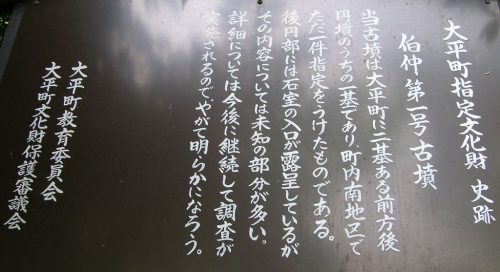 栃木市伯仲古墳(長山古墳) 70栃木県, と_栃木市, 旧大平町 コメントを追加 12月 292025 伯仲古墳群(長山古墳群)は、渡良瀬遊水地北東で巴波川右岸の低台地上に築かれています。【アクセス】東武線静和駅から徒歩・自転車4.7km、駐車場無し ★地図★古墳名 墳形 規模 所在地 立地 出土品、備考 引用伯仲古墳(長山古墳) 前方後円墳 墳丘長約40m 伯仲 低台地 横穴式石室、円筒埴輪 藤岡町史 南東から。藤岡町へ跨る伯仲古墳群の主墳。右奥が後円部、左手前が前方部。石室の一部が露出しているそうだが確認できなかった。 (撮影 2005/07) 返信する 返信をやめる Your Comment 以下のHTML タグと属性が利用できます: <a href="" title=""> <abbr title=""> <acronym title=""> <b> <blockquote cite=""> <cite> <code> <del datetime=""> <em> <i> <q cite=""> <s> <strike> <strong> Name (required) E-mail (required) URI 次回のコメントで使用するためブラウザーに自分の名前、メールアドレス、サイトを保存する。
