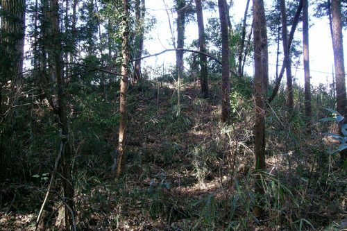 3号墳。丘陵南東斜面にあり高さ0.5mのわりにははっきりとわかる。