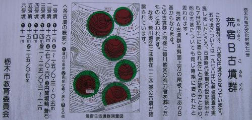荒宿B古墳群は、皆川城内町の聖地公園内に整備保存されています。【アクセス】JR栃木駅から徒歩・自転車5.7km、公園駐車場、見学自由★地図★